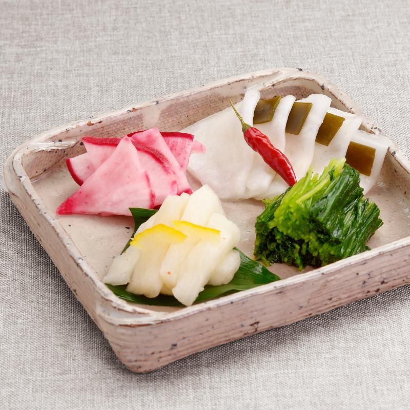 内容 千枚漬(300g)・壬生菜漬(90g)・刻み赤かぶら(140g)・柚子おとし(140g)